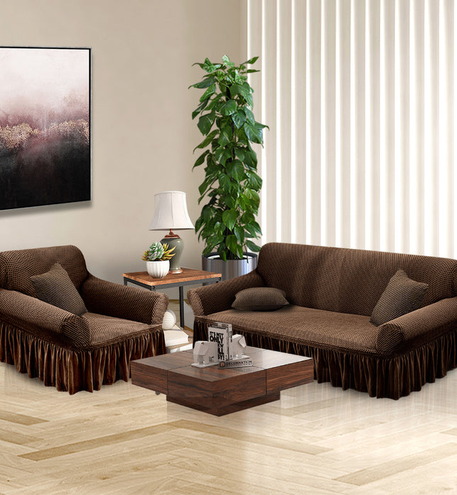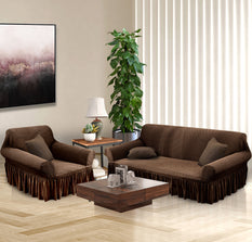 Coffee Colored 1- Seater Sofa Cover with Ruffled Skirt