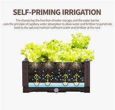 - SOGA Raised Garden Bed has a SELF-WATERING PATTERN. Designed in a way that you conserve water - stop the water leaking, seeping, or evaporating so you, in turn, less usage. It has a water barrier & bottom board design, filtering excess from the soil and storing it in the bottom boards -helping plants absorb water and nutrition completely. Drains holes with small buttons providing good breathability for plant growth and drains excess water when needed.