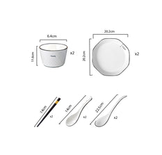 • 1X SOGA 4 pcs Diamond Pattern Ceramic Dinnerware Set (2 Bowls, 2 Plates, 2 Spoons, 2 Pairs of Chopsticks)