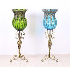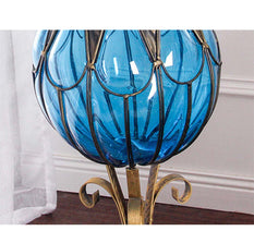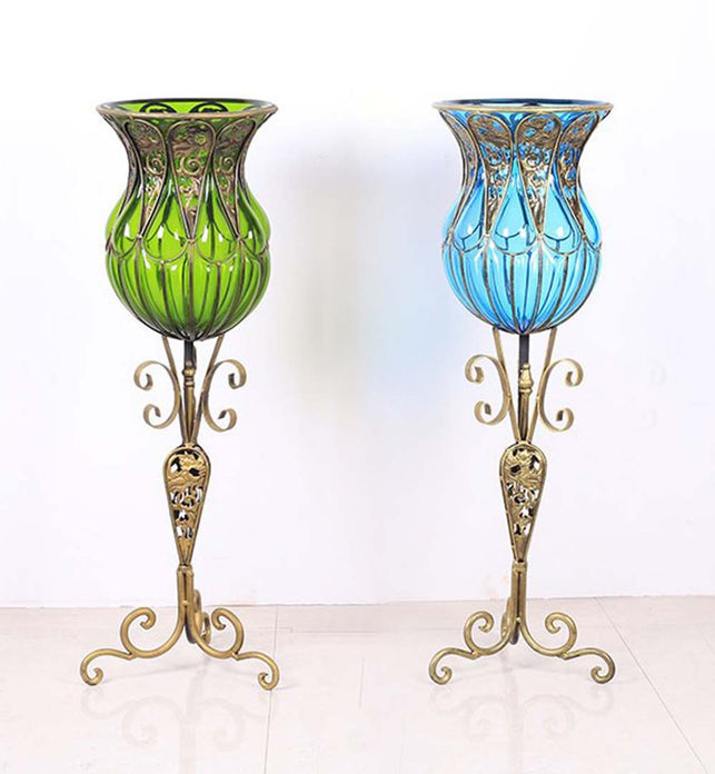 85cm Blue Glass Floor Vase and 12pcs Pink Artificial Flower Set